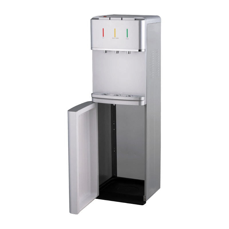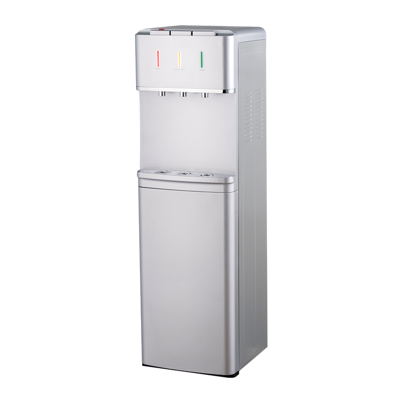 The silver office bottom-mounted water dispenser, available in two models—YX-2508 and YLX-2508—is specifically designed for workplace environments. With its bottom-loading design, this dispenser simplifies water bottle replacement, providing a clean and secure way to refill without the need to lift heavy bottles. The YX-2508 features electronic cooling, which provides quiet operation, ideal for maintaining a peaceful office environment without distracting noise. On the other hand, the YLX-2508 uses compressor cooling for enhanced performance, delivering cold water quickly—perfect for high-traffic areas or summer months. Offering hot, room-temperature, and cold water modes, this dispenser ensures hydration needs are met efficiently, catering to employees' daily water consumption, coffee breaks, and guest hospitality.