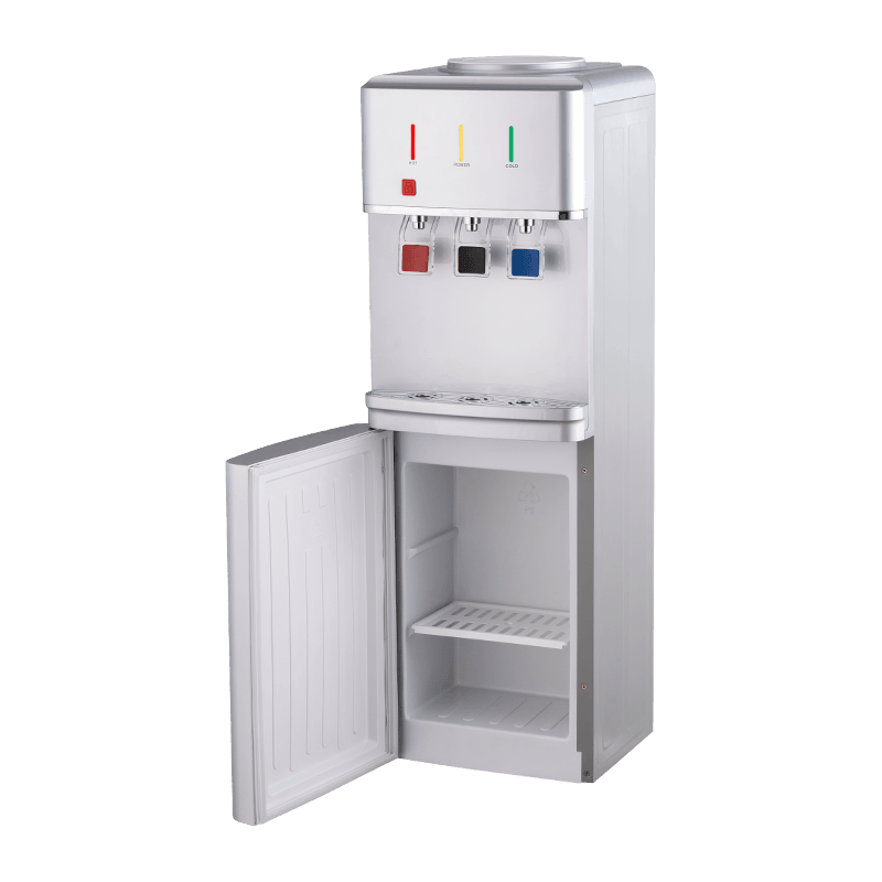 Stay refreshed with the silver three-outlet vertical water dispenser, offering convenient access to hot, room-temperature, and cold water in one compact unit. This dispenser is available in three models: YR-2509, YLR-2509, and YLR-2509Y. The YR-2509 features electronic refrigeration for energy-efficient performance, while the YLR-2509 and YLR-2509Y use compressor refrigeration for superior cooling. The YLR-2509Y goes a step further by including a freezer compartment, adding extra storage space for your convenience. Whether you're at home, in the office, or in a public space, this dispenser’s three-outlet design makes it easy to enjoy hot, cold, or room-temperature water.